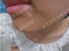 患者于半年前发现下颌部出现白斑,后于...